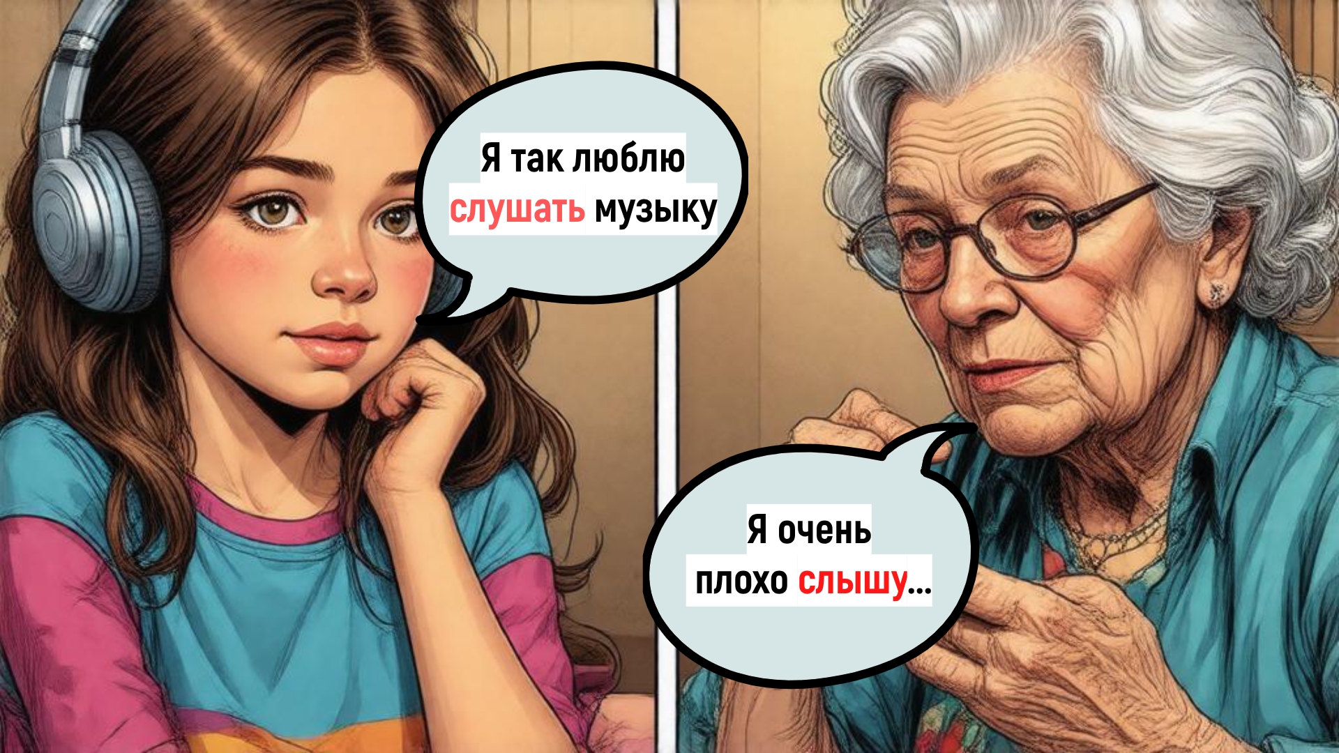 - Наша бабушка уже старенькая и плохо слышит.